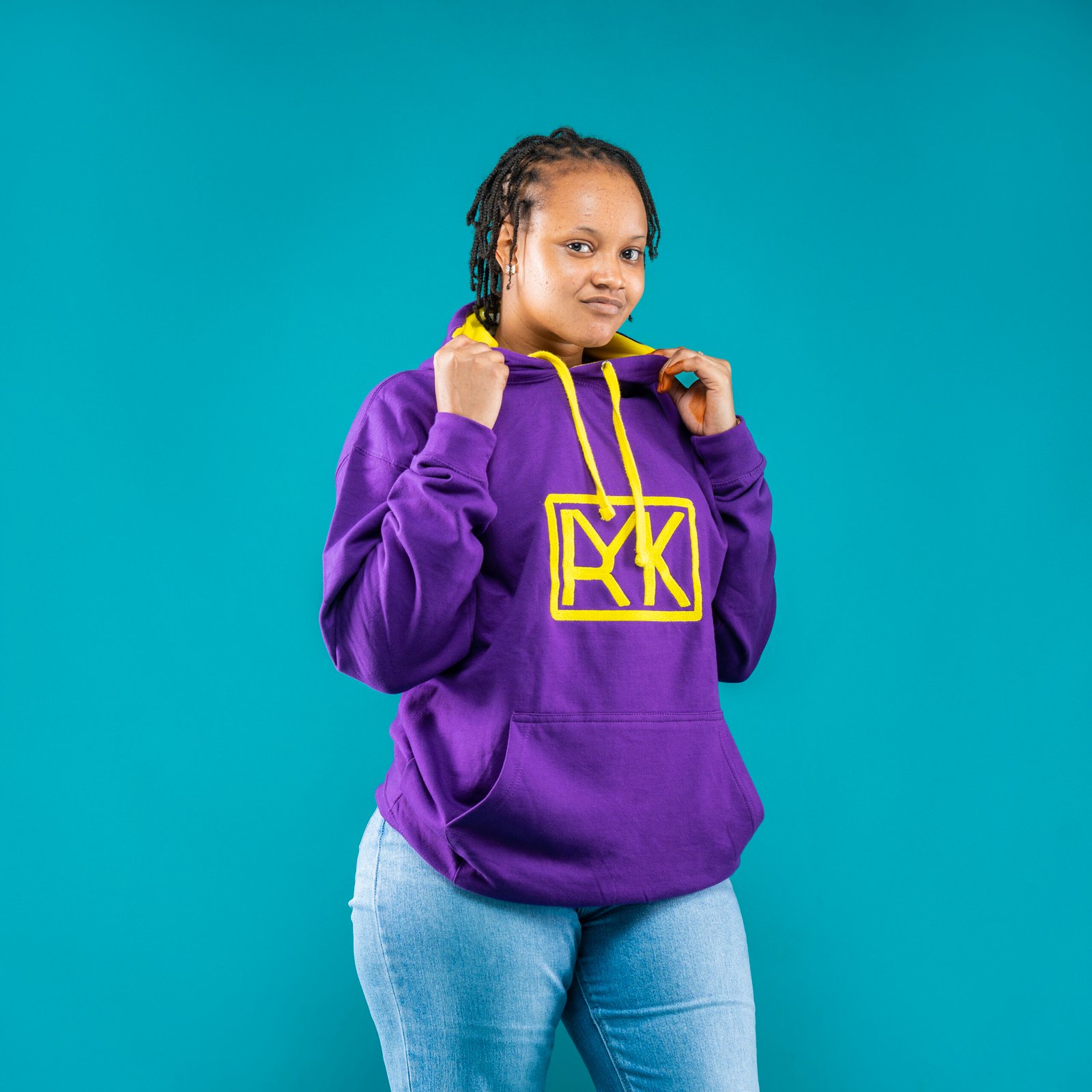 Sweat à capuche unisex brodé Violet /Jaune